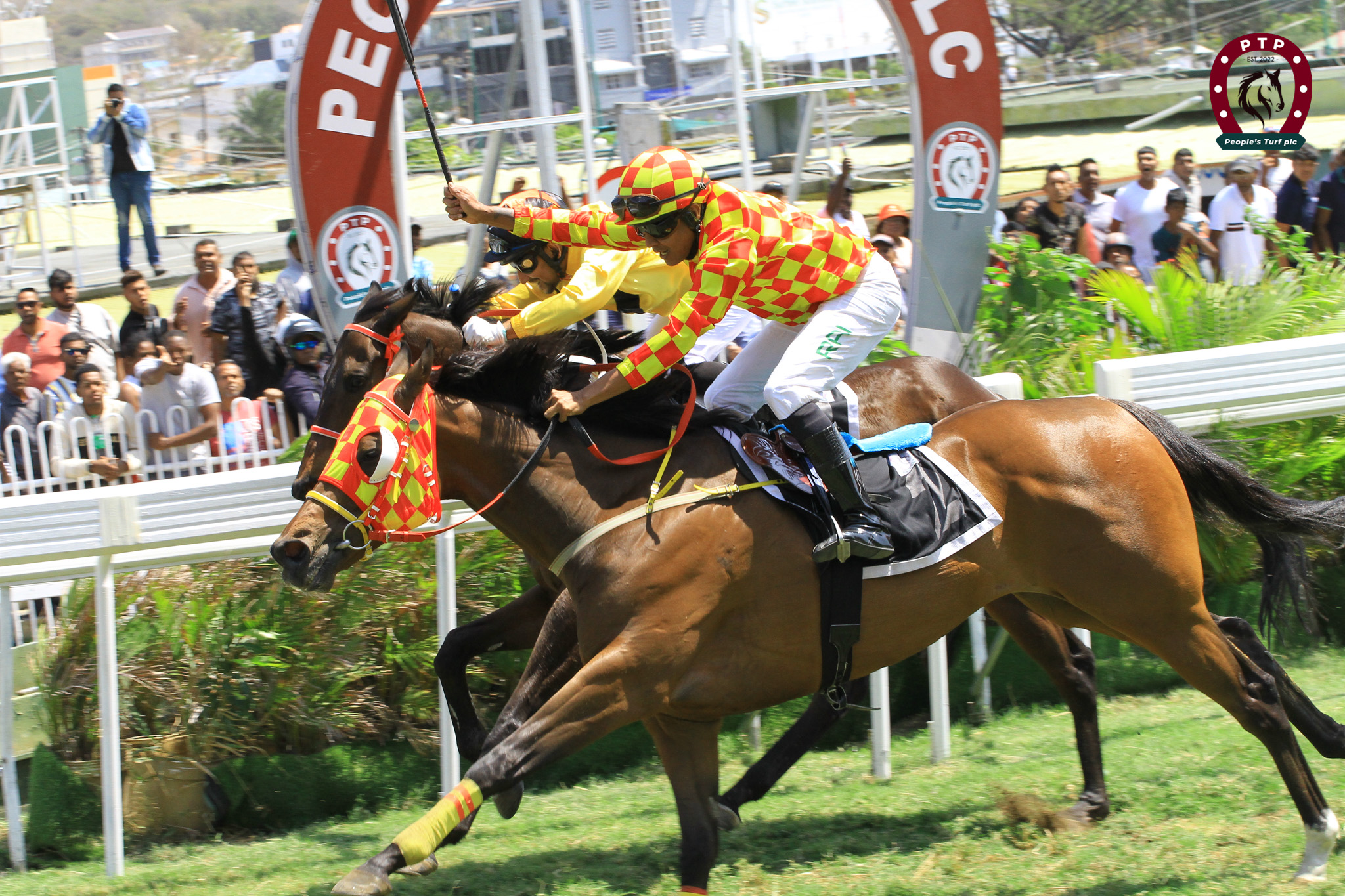 Si Triple Fate Line ou même Your Pace Or Mine pensaient pouvoir diriger ce sprint de 1365m, c’était mal connaître, la vitesse initiale de Captain Lanister. Justement après 300m, la monture de R.Joorawon s’est solidement installée aux commandes. Il compte presque trois longueurs sur Goethe, qui a trouvé les barres en 2e position, suivi de Your Pace Or Mine. Ce dernier étant flanqué de Triple Fate Line, tend de verser à l’intérieur. Puis viennent Xavion et Colour My Fate. Flairant le piège concocté par R.Joorawon, en action sur le meneur, le jockey A.Aucharuz, en selle sur Goethe, sollicite son cheval dès les 350m. A l’entame de la ligne droite, Xavion arrive fort en dehors, Your Pace Or Mine s’amène sur les rails, de même que Triple Fate Line. Qui va gagner ? Captain Lanister joue de son va-tout. Mais Goethe, une fois balancé, trouve son momentum. Le hongre bai va alors se détacher, pour enregistrer sa 8e victoire en seulement 11 sorties.